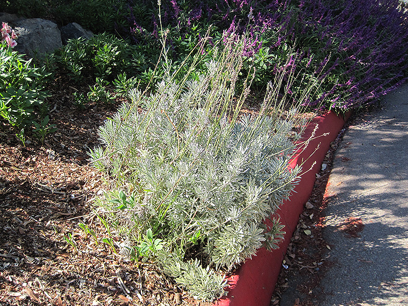 French Lavender will grow to be about 32 inches tall at maturity, with a spread of 4 feet. Its foliage tends to remain dense right to the ground, not requiring facer plants in front. Although it's not a true annual, this slow-growing plant can be expected to behave as an annual in our climate if left outdoors over the winter, usually needing replacement the following year. As such, gardeners should take into consideration that it will perform differently than it would in its native habitat.