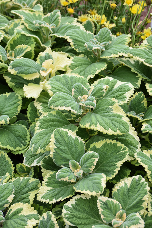 Lemon Twist Plectranthus will grow to be about 8 inches tall at maturity, with a spread of 3 feet. When grown in masses or used as a bedding plant, individual plants should be spaced approximately 24 inches apart. Its foliage tends to remain low and dense right to the ground. Although it's not a true annual, this plant can be expected to behave as an annual in our climate if left outdoors over the winter, usually needing replacement the following year. As such, gardeners should take into consideration that it will perform differently than it would in its native habitat.