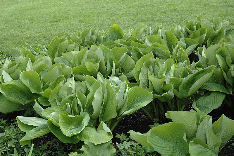 Sum and Substance Hosta will grow to be about 3 feet tall at maturity, with a spread of 5 feet. When grown in masses or used as a bedding plant, individual plants should be spaced approximately 4 feet apart. Its foliage tends to remain dense right to the ground, not requiring facer plants in front. It grows at a medium rate, and under ideal conditions can be expected to live for approximately 10 years. As an herbaceous perennial, this plant will usually die back to the crown each winter, and will regrow from the base each spring. Be careful not to disturb the crown in late winter when it may not be readily seen!