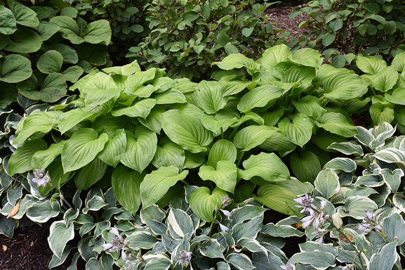 Guacamole Hosta will grow to be about 24 inches tall at maturity extending to 3 feet tall with the flowers, with a spread of 4 feet. When grown in masses or used as a bedding plant, individual plants should be spaced approximately 3 feet apart. Its foliage tends to remain dense right to the ground, not requiring facer plants in front. It grows at a medium rate, and under ideal conditions can be expected to live for approximately 10 years. As an herbaceous perennial, this plant will usually die back to the crown each winter, and will regrow from the base each spring. Be careful not to disturb the crown in late winter when it may not be readily seen!