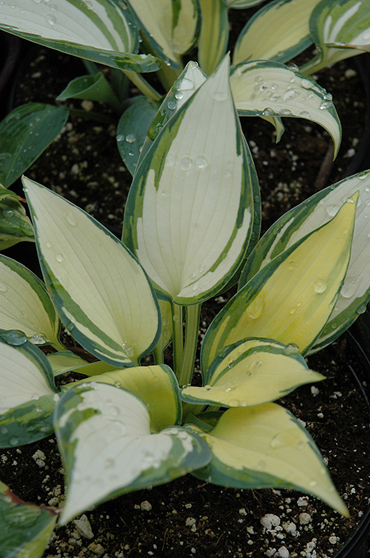 Remember Me Hosta will grow to be only 6 inches tall at maturity extending to 10 inches tall with the flowers, with a spread of 24 inches. When grown in masses or used as a bedding plant, individual plants should be spaced approximately 20 inches apart. Its foliage tends to remain low and dense right to the ground. It grows at a medium rate, and under ideal conditions can be expected to live for approximately 10 years. As an herbaceous perennial, this plant will usually die back to the crown each winter, and will regrow from the base each spring. Be careful not to disturb the crown in late winter when it may not be readily seen!